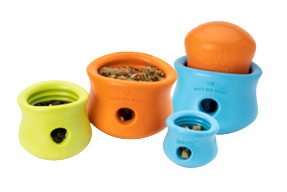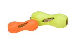 Yes, you read that name correctly. Maybe. This toy was designed with heavy chewers in mind. Loose pieces of food can be used but for an extra challenge place a bully stick down the middle and watch your dog earn his bites. Another toy that will keep your pet entertained even after they have finished working for their meal. As with WEST PAW toys these are Made in the USA with non-toxic materials. They can also be recycled and placed in the dishwasher if you need to clean them.