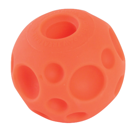 The Planet Dog Orbee Tuff Snoop will become a favorite toy whether it is filled or empty. A squishy ball can be filled with a meal or treats. The center squishes out to help fill the ball but leaving it like this also adjust the difficulty of food coming out. Even though it has some give to it this toy is still tough and can stand up to heavy chewers. The ball bounces at odd angles adding unpredictability and greater entertainment for both you and your dog. Word to the wise, is your dog has smaller pieces of kibble they will come out much faster has this toy has a wide opening.